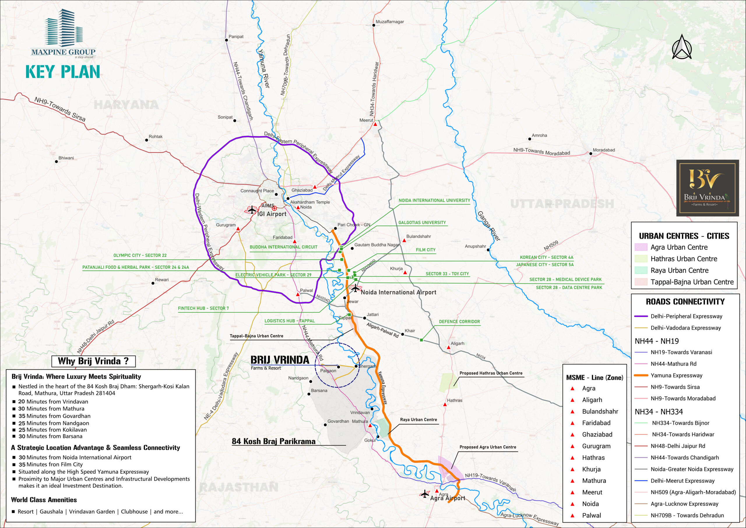 Discover Brij Vrinda, a beautifully planned farmland project near Vrindavan, thoughtfully developed by Maxpine Group.Here, every plot connects you to the sacred energy of Braj Bhoomi, the tranquility of open green land, and the security of a legally approved investment. Brij Vrinda is more than just land — it’s a legacy.